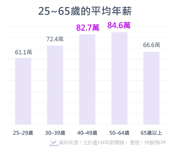 這並非直覺判斷,而是有實際數據支持,根據114年主計處的統計資料顯示,人生的薪資高峰,是從40歲起,出現14%的明顯成長,若能好好把握住,還可以繼續延續下一個10年。